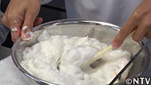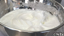 1.卵を割り、卵黄と卵白に分ける。 卵白をハンドミキサーで、メレンゲを作る。 |