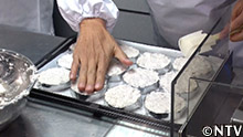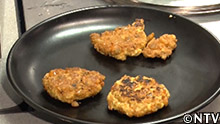4. 3.を成型し、フライパンで約7分両面を焼いたら、エビと豆腐のハンバーグが完成! |