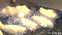 4.180℃の油で5分揚げたら、フィッシュフライの完成! |
