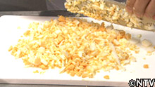6.卵を3個茹でる(沸騰してから7分)。 茹で上がったら、殻を剥き、みじん切りにする。 |
