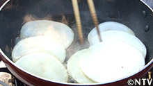 2. 1.(サツマイモ)を油で5分、キツネ色になるまで揚げたら、スティックポテトの完成! |