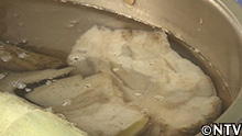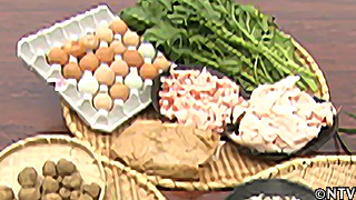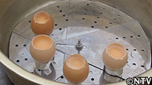 3.穴を開けた卵の殻に入れて蒸す。 |