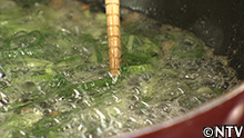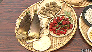 埼玉県秩父郡横瀬町周辺で頂いた0円食材で作ったのは3品。小さい男爵の新じゃがを串揚げにして、豚肉の味が染みた味噌をかけた、秩父名物「みそポテト0円風」。そして、茹でてみじん切りにしたタケノコをご飯に見立て、豚の脂身と赤身を平たくして、そばを衣に揚げたカツで作った「0円カツ丼風」。デザートは、熟しすぎたイチゴと卵のコラボで「0円プリン~いちごジャム添え」。 |