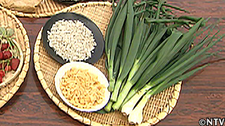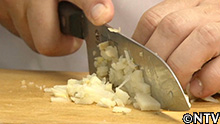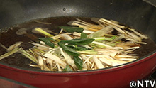 4.タマネギの葉を小口切りにし、出た油で炒める。 |