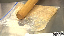 2.天かすをビニール袋に入れてめん棒で叩き、細かくする。 |