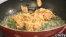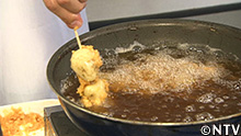 3.細かく砕いた天かすと溶き卵を混ぜたものを衣にして揚げる。 |