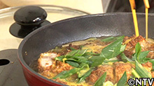 6.刻んだタマネギとカツを入れて溶き卵でとじる。 |