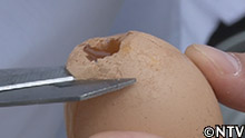 1.卵の殻の上の部分だけ割って中身を取り出す。 |