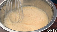5.小さいフライパンに水溶きしためんつゆを煮立てる。 |