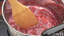 4.ヘタを取り、適当な大きさに切ったイチゴと砂糖を煮つめる。 |
