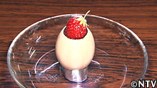 5.蒸し上がった卵の上に煮詰めたソースをかけ、イチゴを載せれば完成。 |