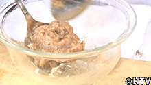 4.アジの身に小麦粉・酒・醤油を少々加えて混ぜ、形を整えたら、煮る。 |