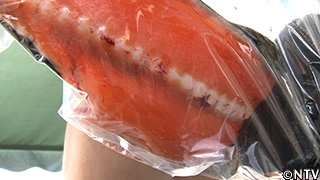 頂いたのは、さばいた後に出たニジマスの頭とアラ、死にそうに弱っていたイワナとヤマメ。