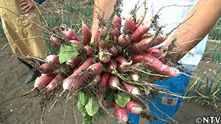 二十日大根と同じ畑には他にも大根や赤大根、小松菜、ネギなども育てている。