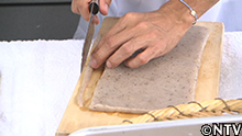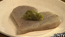 1.ハートや☆の形にコンニャクを切り取る。 |