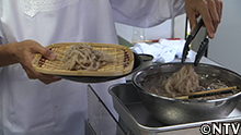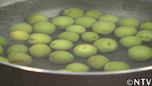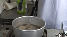 2.(1)のコンニャクを砂糖湯で茹でて、氷が入ったボウルに入れて冷ます。 |