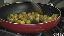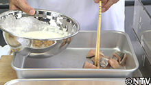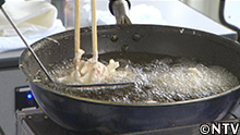 3.(1)と(2)を天ぷら粉と混ぜて揚げる。 |