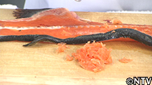 1.ハナビラタケ・なめこ・ヤマメ・イワナを適度な大きさに切る。 |