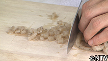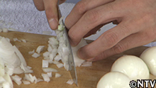 1.玉ねぎをみじん切り、玉ねぎの葉を小口切り、二十日大根を角切りにする。 |