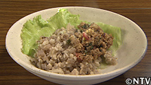 3.お皿にレタスの葉を敷いて具と米を盛り付けて完成! |