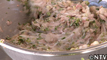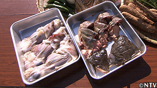 4.長芋をすりおろし、(3)の大根の菜、白菜、肝と混ぜ合わせる。 |