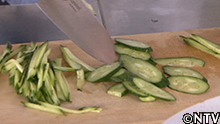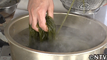 6.わかめ麺を7分茹で、氷水で冷やす。 |