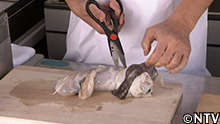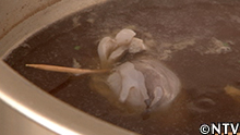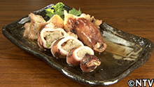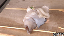 6.タコのくちばし(漏斗)に竹串を通し、(4)の具を詰め、最後に竹串で蓋をする。 |