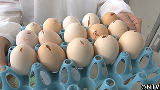 「みずほファーム」では、約15万羽の鶏を飼育しており、餌やりからパック詰めまで、全自動で行っている。