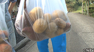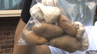 傷んだり、虫に食われてしまったサツマイモと玉ねぎ、実が小さすぎるジャガイモを分けて頂いた。