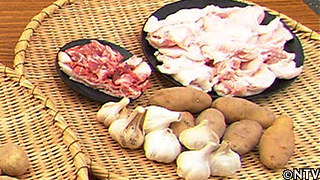 3.肉を炒め、色が変わったらそこにタマネギとサツマイモ、ジャガイモを加えさらに炒める。 |