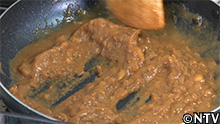 3.(2)に味噌、砂糖、酒、みりんを加え、ニンニク肉みそを作る。 |