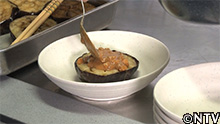 6.揚げた賀茂なすにニンニク肉みそをかけ完成。 |