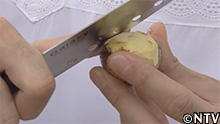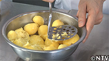 2.ジャガイモを茹で、皮をむき、マッシャーでつぶす。 |
