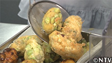 6.180℃の油で3分揚げ、こんがりきつね色になれば完成。 |