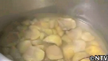 2.サツマイモをイチョウ切りにし、水にさらす。 |