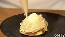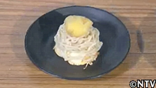 8.残った栗のペーストに砂糖を混ぜ、絞り器を使い、ぐるぐる円を描くようにかけていく。 |