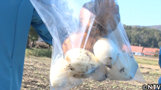 長瀬と大倉が、養鶏場の「吉越ファーム」で分けて頂いた0円食材。