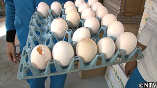 採卵時、ケースに斜め向きに入れたものは、その上にケースを重ねたときにケースにぶつかり割れてしまう。殻が薄く、鶏が産み落とした際に、金属のケージにぶつかり割れてしまう。
