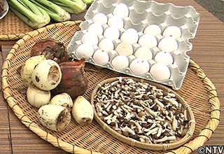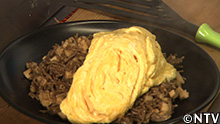 3.卵を溶き、半熟状に焼いたら、炒めたそば、里芋の上にのせる。 |