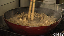 2.里芋を米粒状に切り、弱火で15分煮て、(1)と一緒に炒める。 |