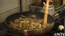4.キャベツ、玉ねぎを刻み、シメジを加え、ソースと水溶き片栗粉を加え、あんかけを作る。 |