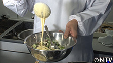 4.(3)に卵、小麦粉を加え、型に入れ薄く伸ばす。 |