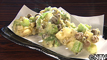 2.シメジを加えて、衣を絡めて、180度の油で揚げる。 |