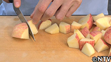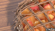 5.煮たリンゴを(4)の上にのせ、そばを編み、網目状になるようのせる。 |
