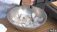 3.茹でた里芋をマッシャーですり潰し、砂糖、塩を加える。 |