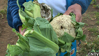 頂いたのは、部分的に痛んでしまい、集荷できずに畑に放置されていたカリフラワー。