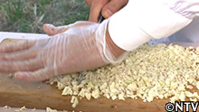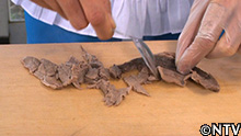 加工の際、規定の大きさにカットするが、頭の方から切っていくとどうしても尾付近が残ってしまい、小さいものは捨ててしまうという。