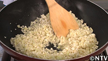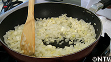 2.大根をみじん切りし、オリーブオイルで炒めたら、塩胡椒で味付け。 |