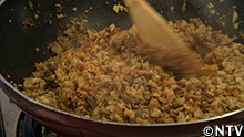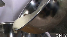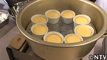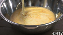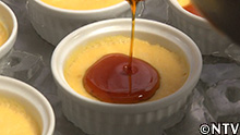 4.最後に、グラニュー糖をフライパンで水に溶かしながら作ったカラメルソースをかける。 |