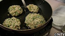 3.キンメ・大根・溶き卵・小麦粉をよくこねたら、小判型にして焼く。 |